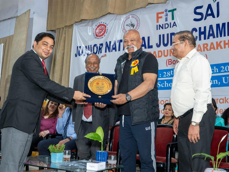 Honour to Satish Sharma on the occasion of national women judo championship held at Delhi Indira Gandhi stadium