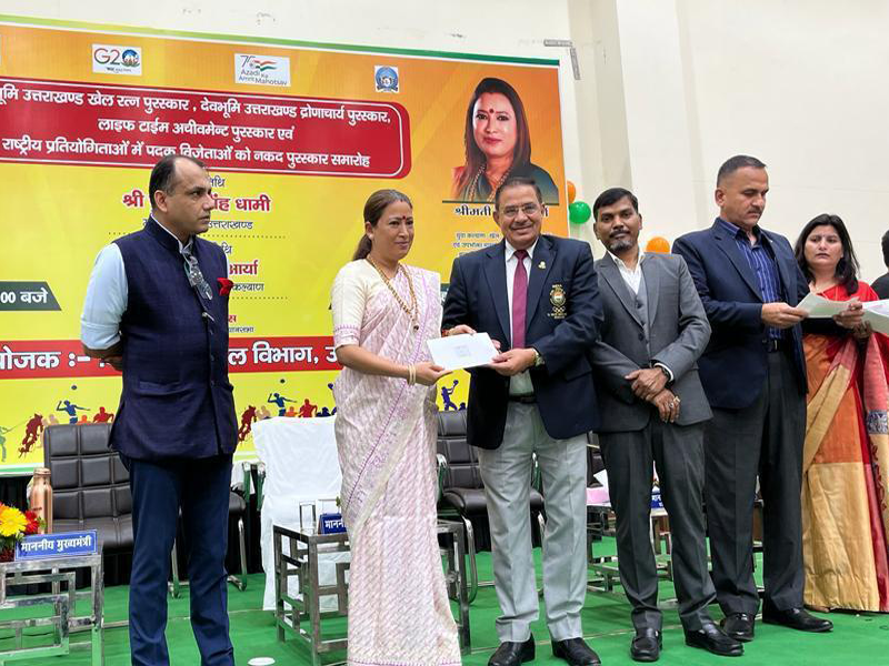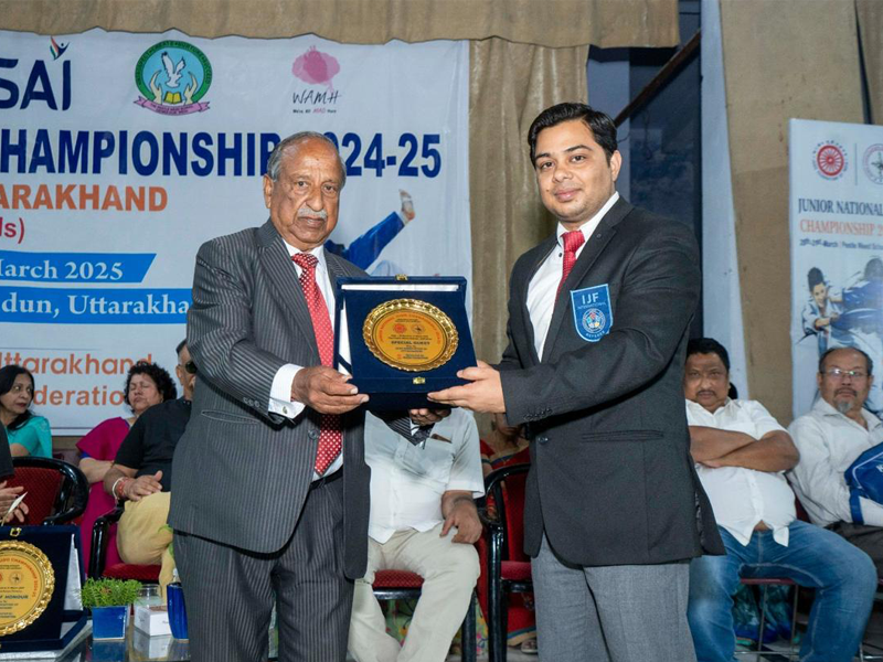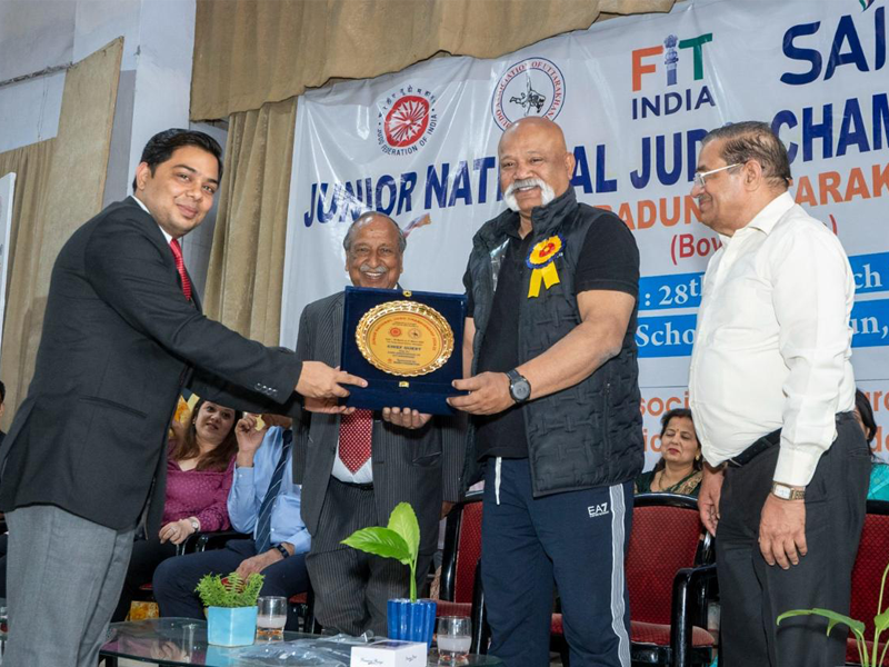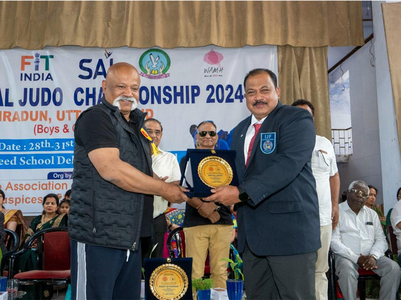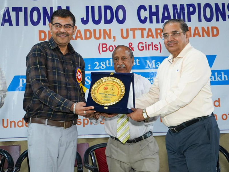Honour to Satish Sharma on the occasion of national women judo championship held at Delhi Indira Gandhi stadium